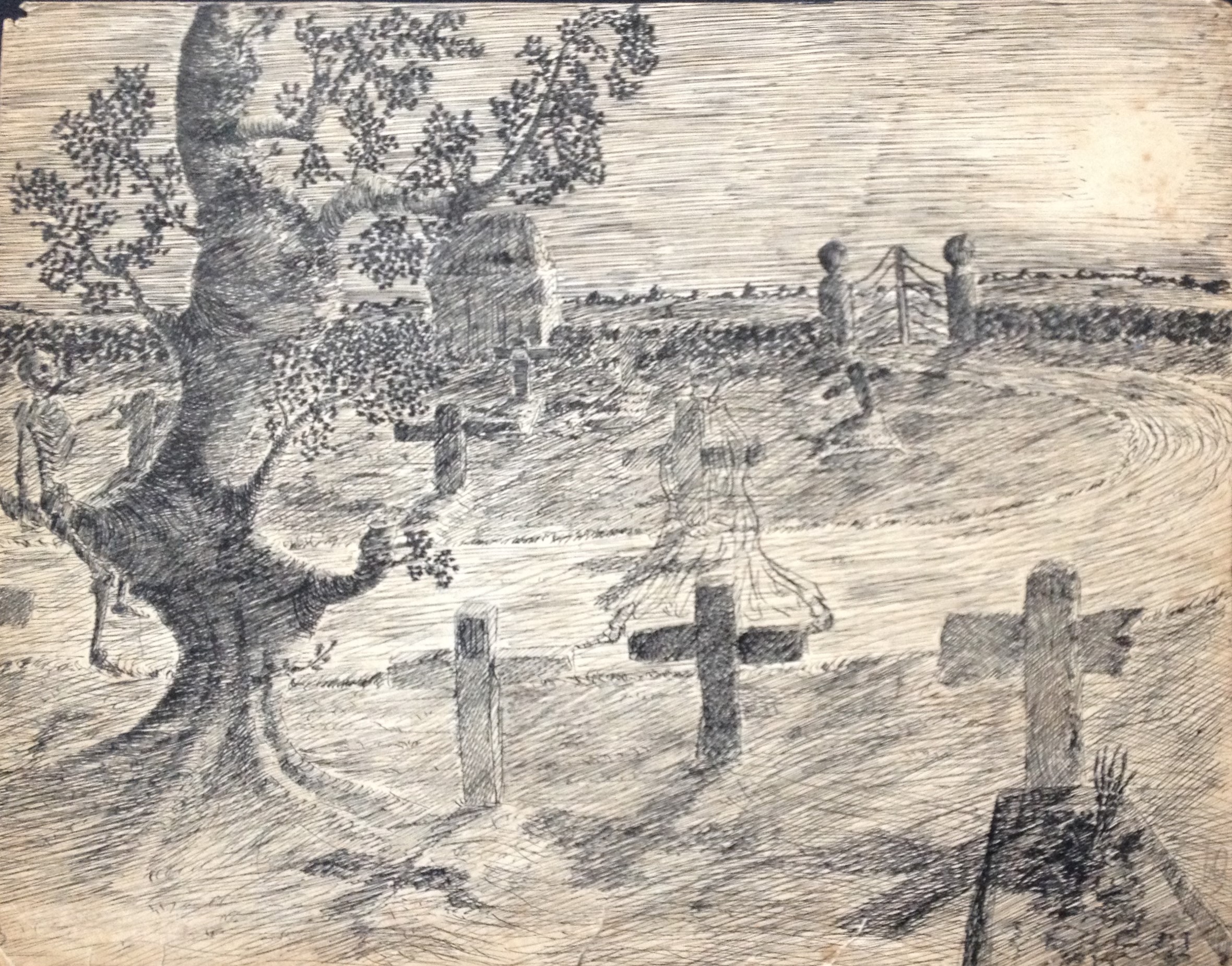Opkomende maan op het kerkhof, 1953, 30,5 x 24,5 cm
