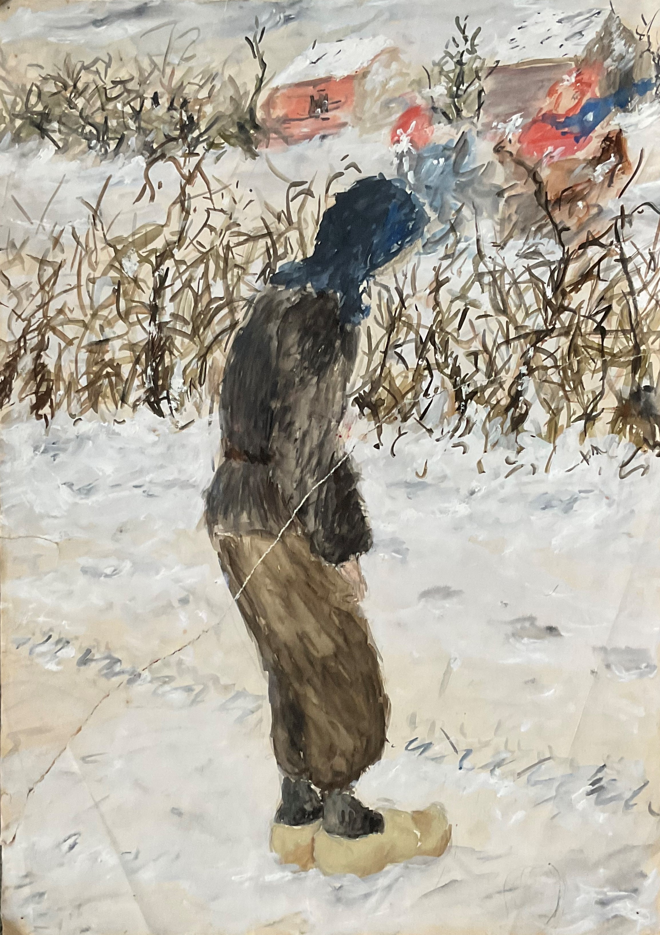 Jongen in de sneeuw en sneeuwballengevecht, 1958, 39,5 x 28 cm