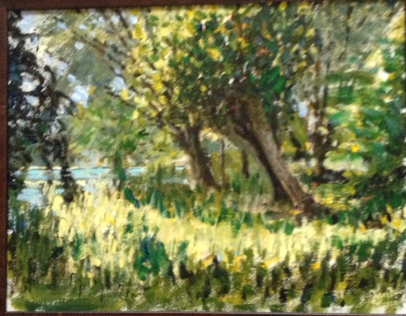 Vroeg voorjaar bij de Punt in Baambrugge, 2019 - 2020. Acryl op mdf, 152,5 x 28 cm. Particulier bezit.