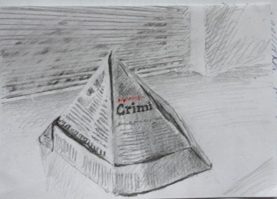 Hoedje van papier, 2021. Potloodtekening, 29 x 19 cm. Particulier bezit.