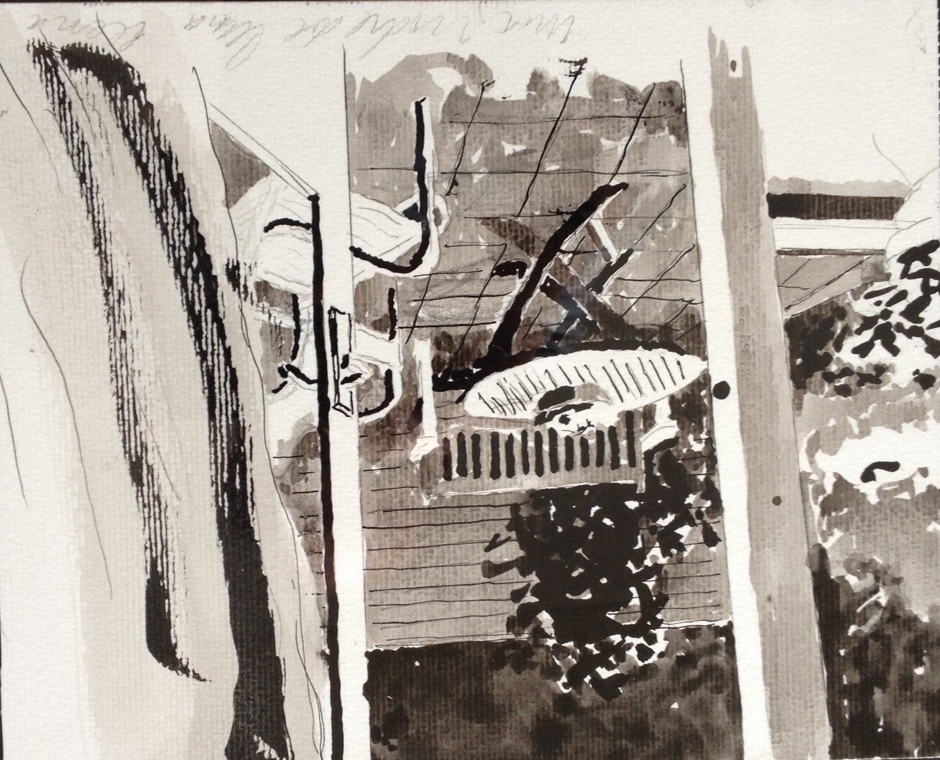 Maannacht achter ("Una noche de luna llena"), 2017. Gewassen Oost-Indische inkt, 35 x 25 cm.