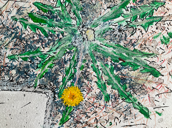 Paardenbloem tussen tegels, 2021. Mixed media, 23 x 15,5 cm.