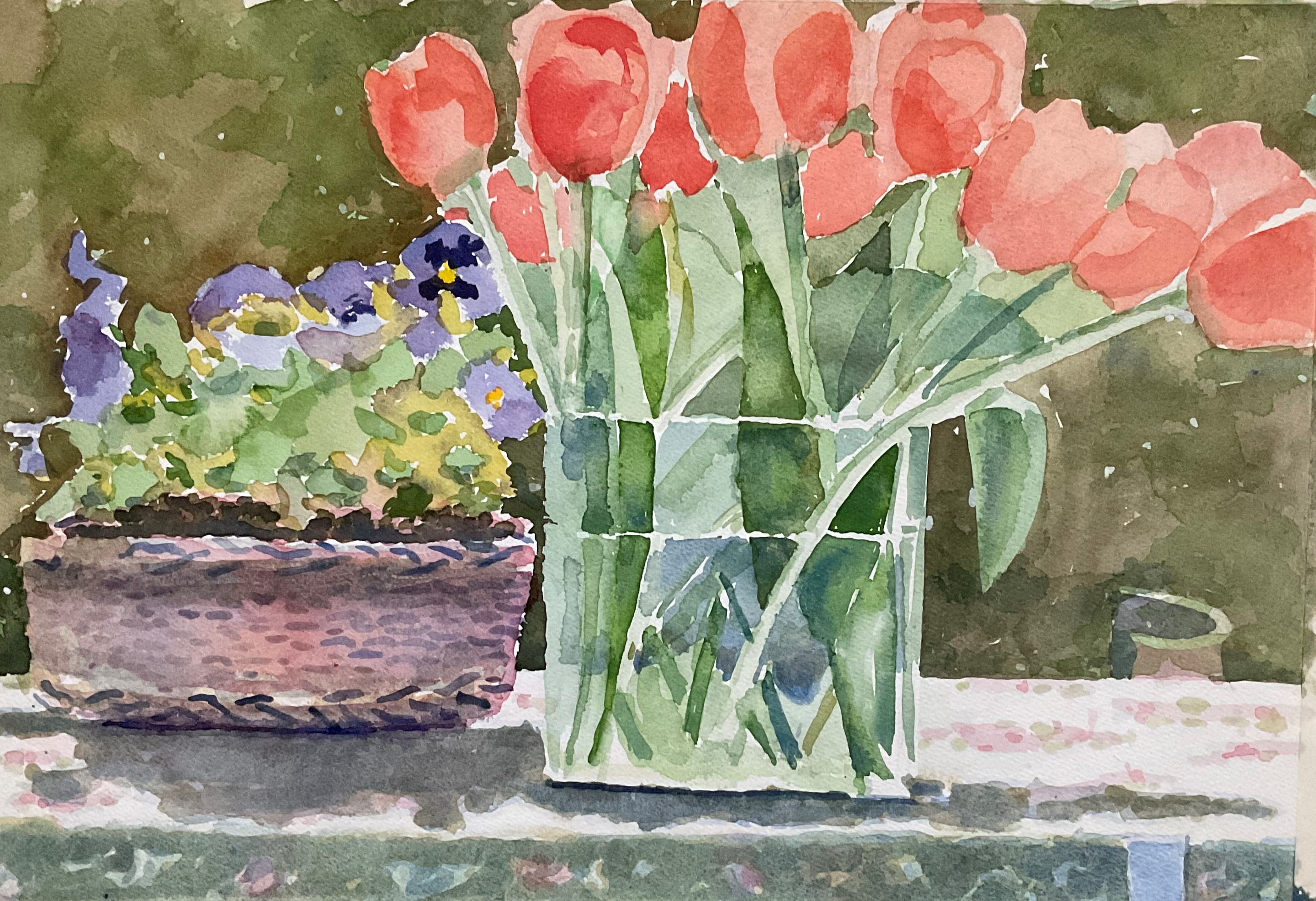 Rode tulpen, 2012. Aquarel, 41 x 32 cm.