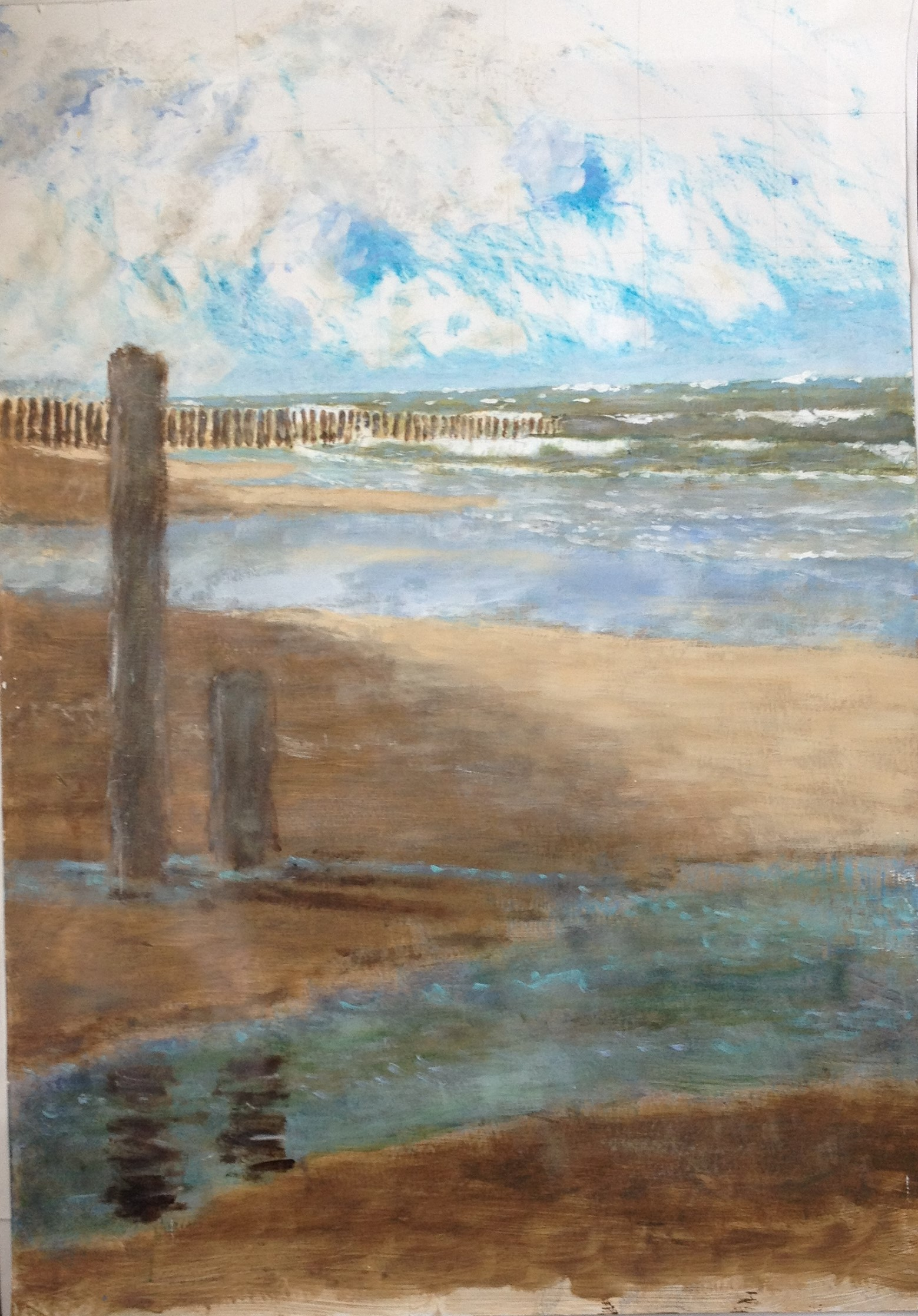 Strand in Cadzand, 2015. Acryl op stonepaper, 100 x 60 cm.